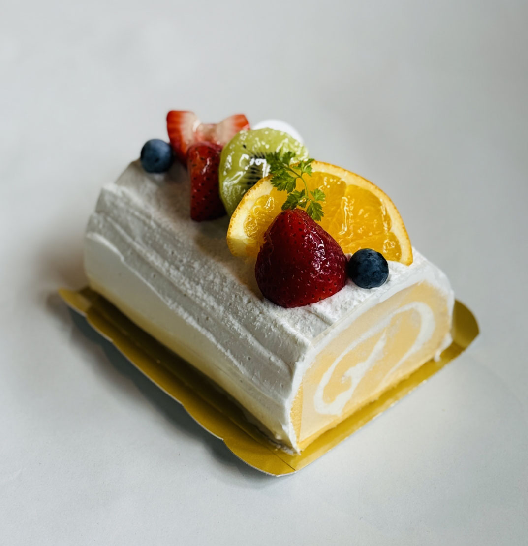 ふわふわのスポンジに、クリーミーでコクのあるカマンベールチーズを使ったクリームを巻き込み、仕上げに色鮮やかなフルーツを飾った「カマンベールロールケーキ」。チーズのまろやかさとフルーツの爽やかさが絶妙にマッチし、見た目も華やかなスイーツとして人気です。