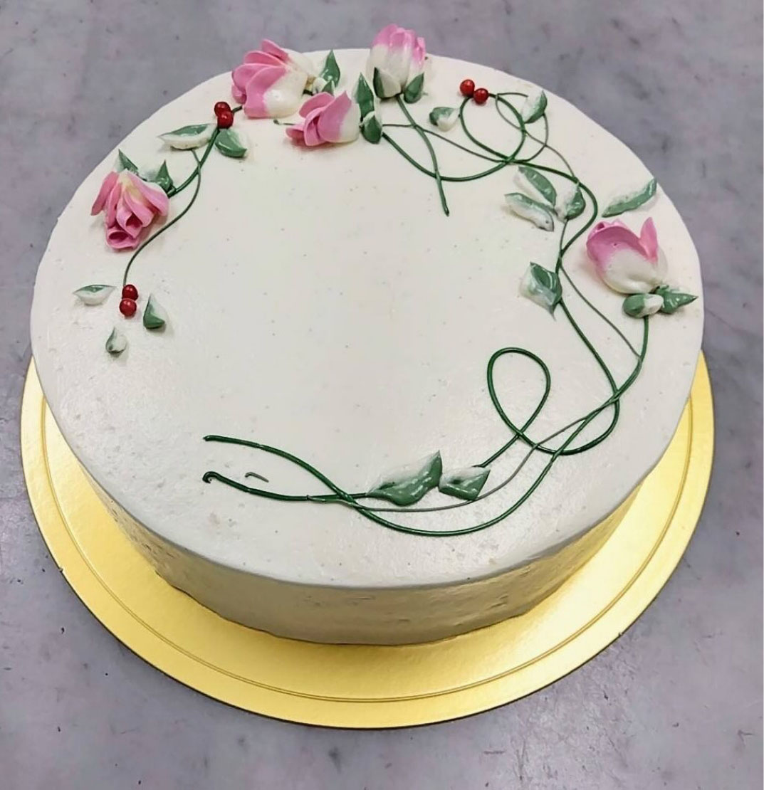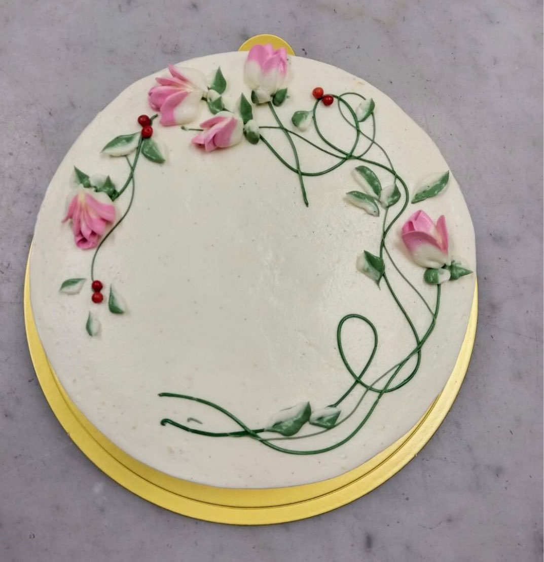オーナーシェフのスペシャリテの1つでもあるバタークリームデコレーション。上質なバターを使用し甘さ控えめな上品な味のクリームに仕上げています。 飾りの線画きも季節によりモチーフや色が変わるのでデザインはお任せの予約をお願いします。