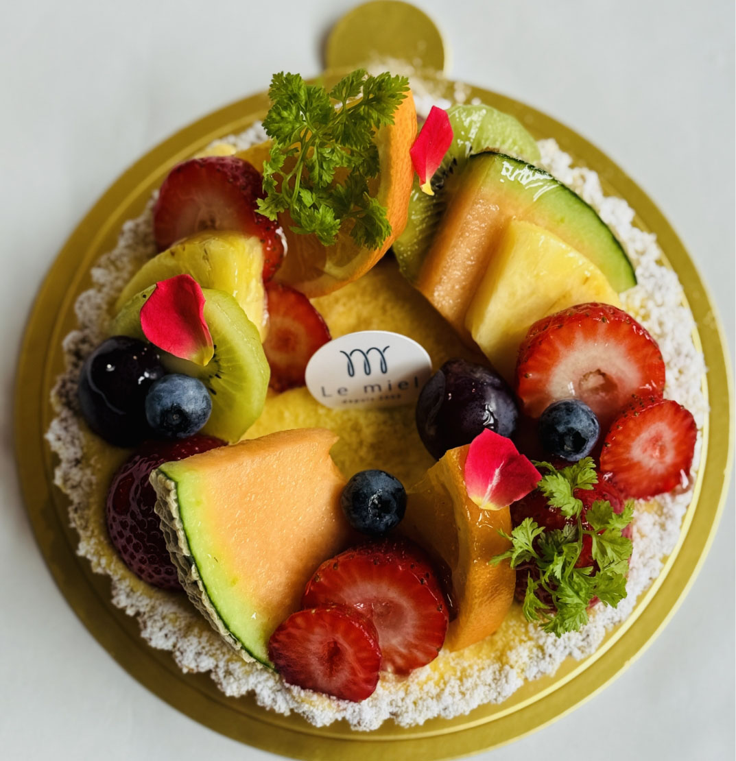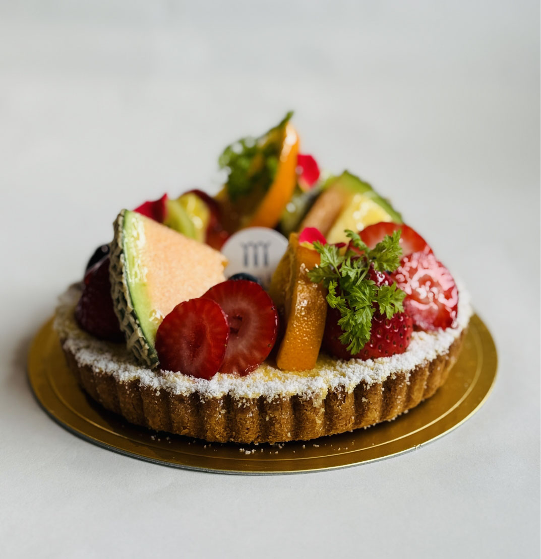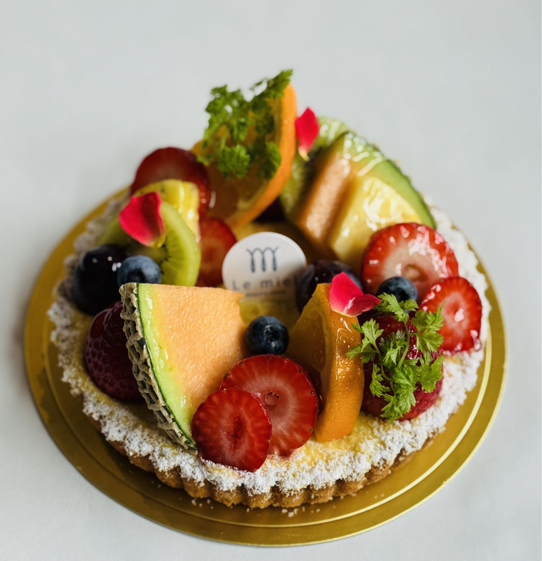 タルトの上に当店自慢のカスタードクリームとたくさんの季節のフルーツを飾りました。