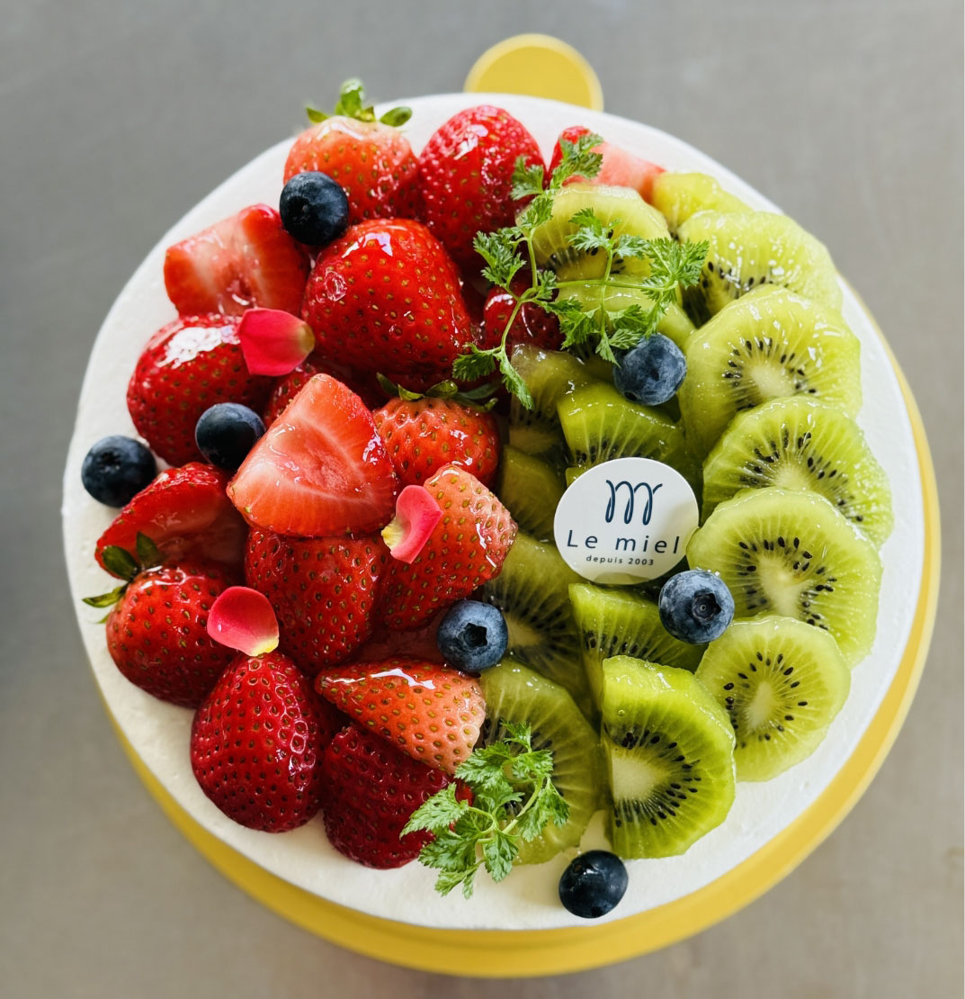 ル・ミエルのジェンダーリビールケーキは、いちごとキウイ又はいちごとブルーベリーのどちらかを選べます。