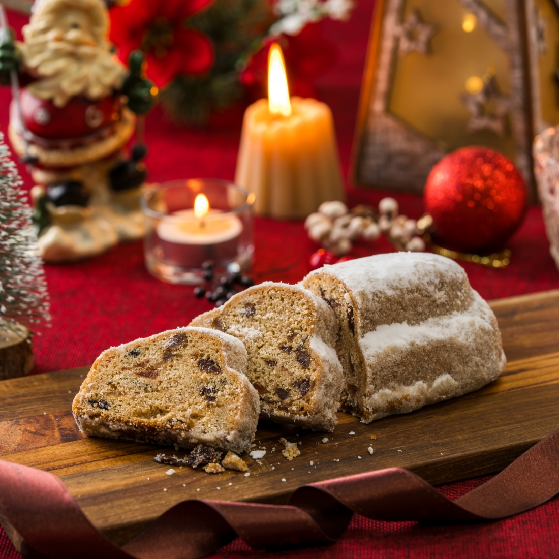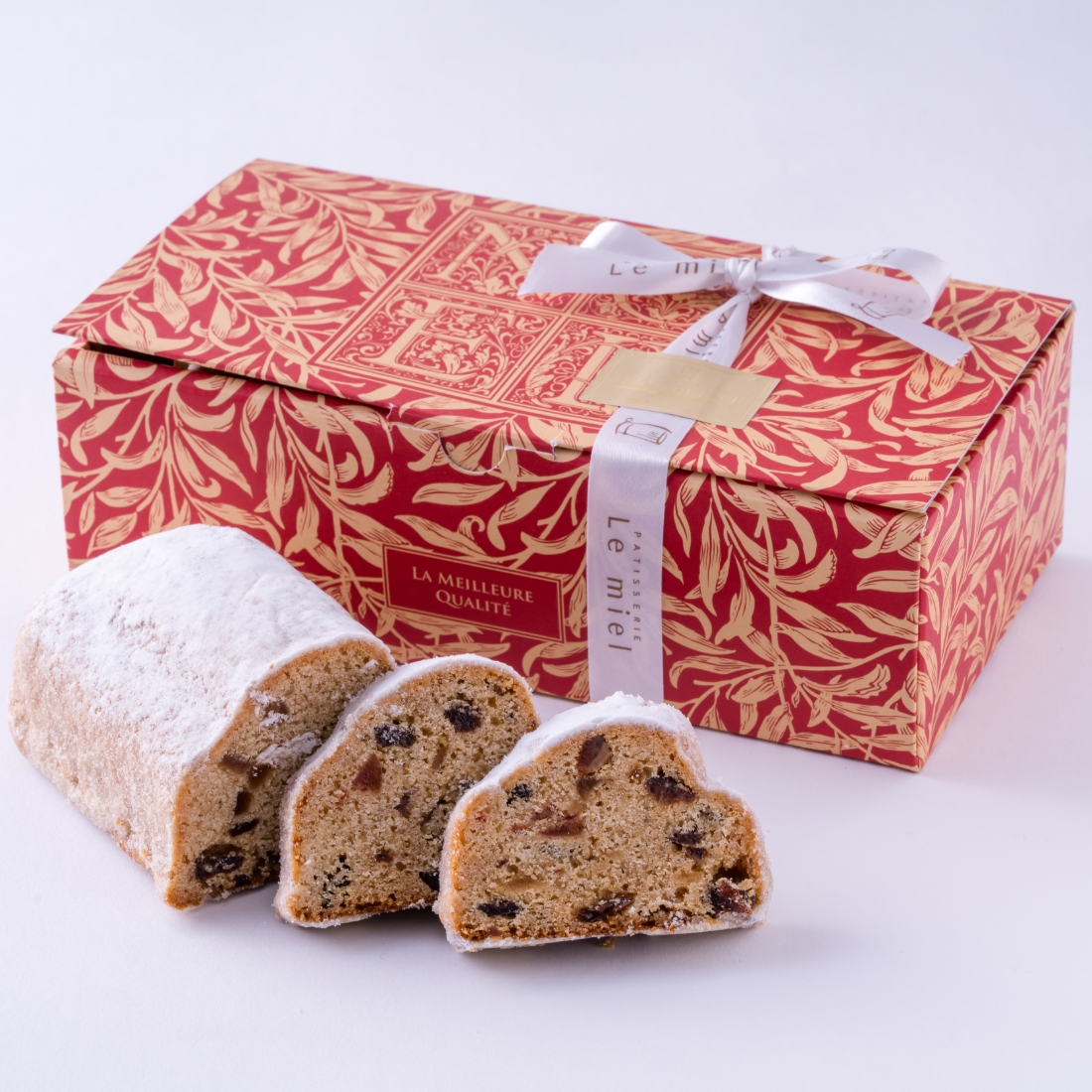 厳選した材料を使用しフルーツケーキのようなしっとりとしたケーキ屋さんのシュトーレンに仕上げました。